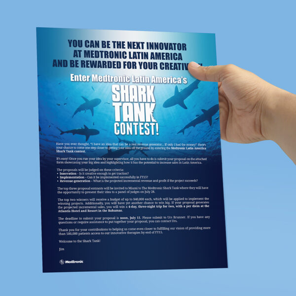 View All WorkZoomDetails MedtronicTRILINGUAL “SHARK TANK” SALES COMPETITIONBy MacarenaMarch 14, 2020Agents’ Motivational Sales Campaign - English, Spanish & Portuguese Deliverables