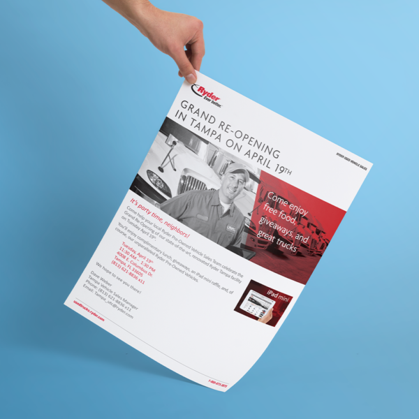 View All WorkZoomDetails Ryder Used Trucks DivisionOVERFLOW SERVICESBy MacarenaMarch 14, 2020Promotional Campaign for Re-Opening of Tampa Location